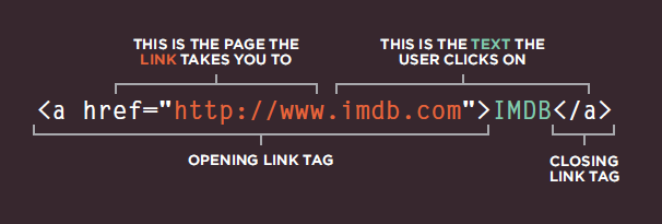 Links are created using the a> element which has an attribute called href. The value of the href attribute is the page that you want people to go to when they click on the link.