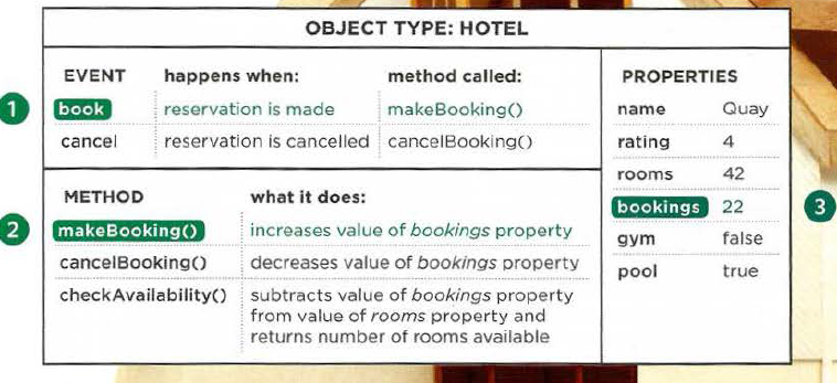 In computer programming, each physica l thing in the world can be represented as an object. There are two different types of objects here: a hotel and a car.